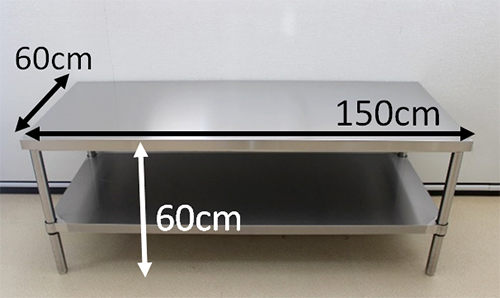 下棚に材料や、お皿などの備品を置けて大変便利です。ステンレス製なので熱にも安心です。